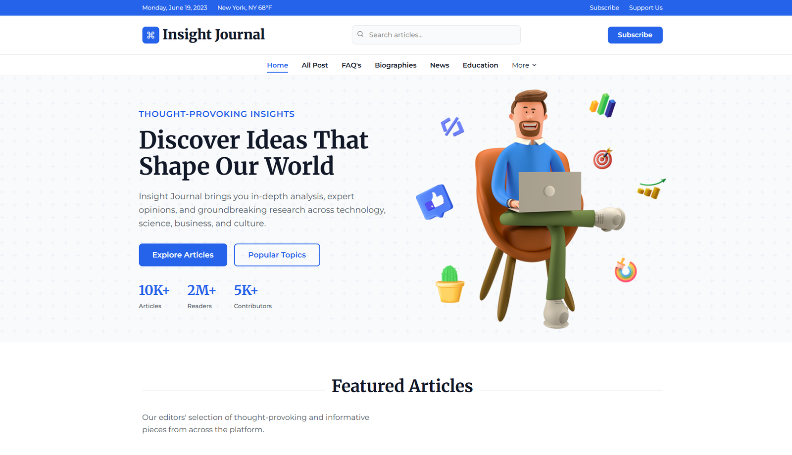 A modern, customizable blog Demo Project for news, biography, and education. Mobile-friendly, responsive, and easy to adapt for a seamless user experience.